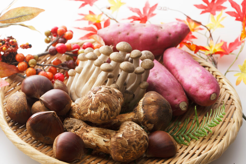 しいたけ、しめじ、かぼちゃ、さつまいも、りんご、栗… 秋の味覚との組み合わせで“秋らしさ”を演出できる。